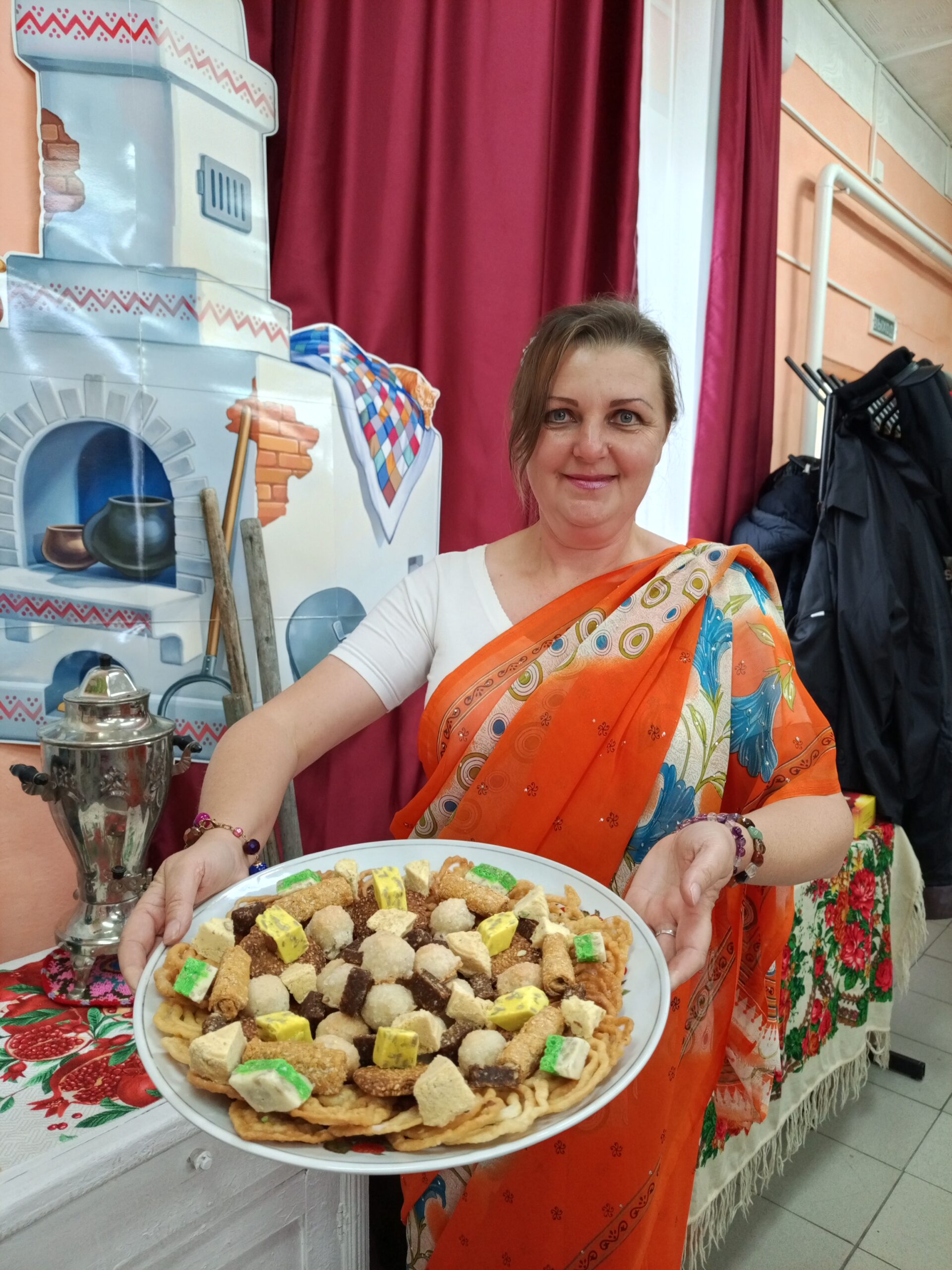 В самом начале мероприятия Любовь Фоминцева рассказала о русской национальной кухне. Самое главное в русской избе – печка. Хорошая хозяйка должна была иметь лопату и ухват, чтобы приготовить еду. Любовь Ивановна показала, как пользовались такими инструментами, и объяснила для чего они необходимы. Посуда раньше была глиняная, нам показали чашки и копилку, сделанную в форме совы. Глиняную посуду передал в дар глава Усть-Коксинского сельского поселения Евгений Бескончин. Староста села Виталий Семенов передал в музей шкаф 1960-го года и тумбочки, изготовленные плотником Владимиром Колесниковым, ранее проживавшем в селе.