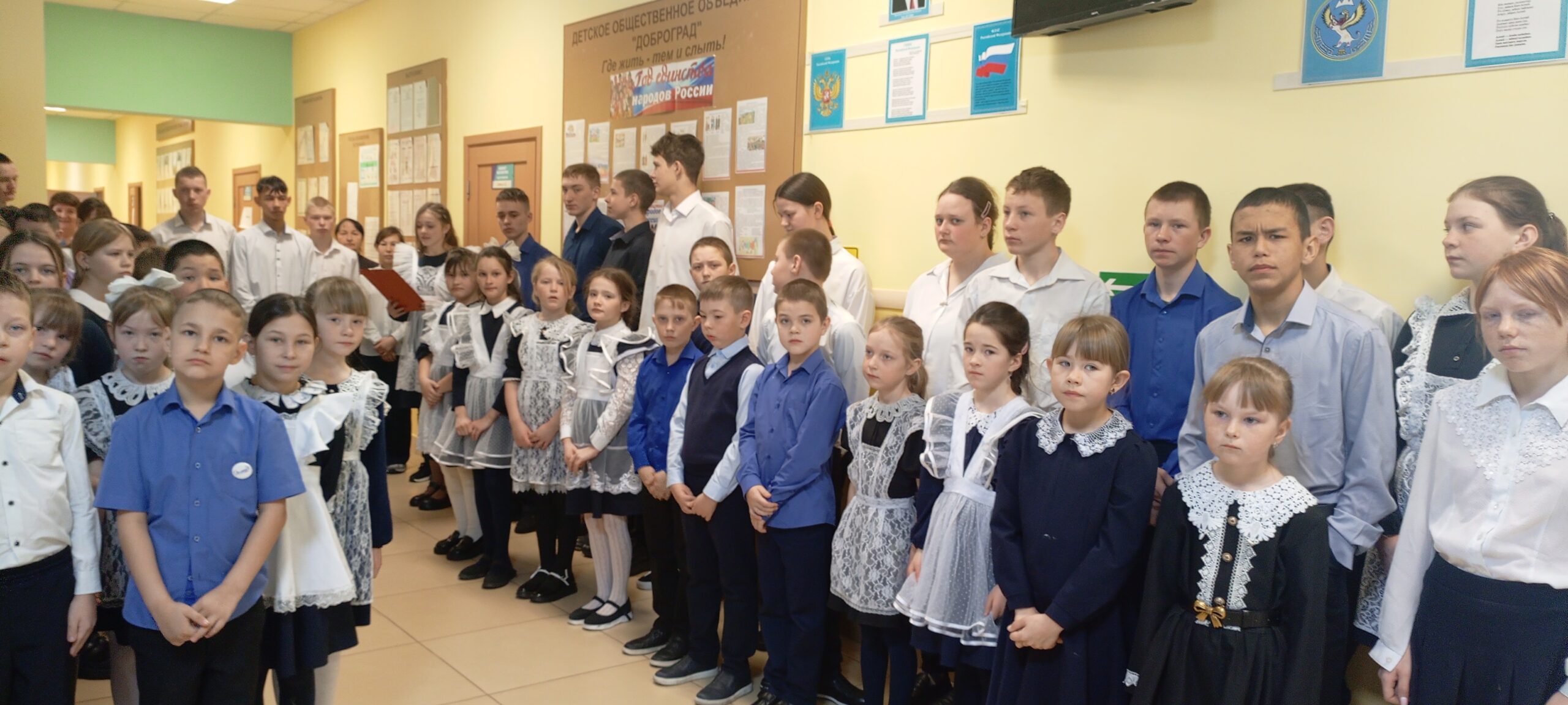 Старт мероприятию дали ведущие Виолетта Балакина и Кирилл Казанцев. Учащиеся 9 класса прочли авторское стихотворение Светланы Хохловой: «Россия – общий дом».